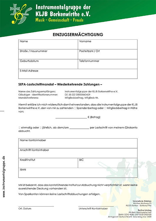 Eine Fördermitgliedschaft gibt uns Planungssicherheit, stärkt die Jugendarbeit und trägt maßgeblich dazu bei, die Instrumentalgruppe langfristig erfolgreich weiterzuführen.